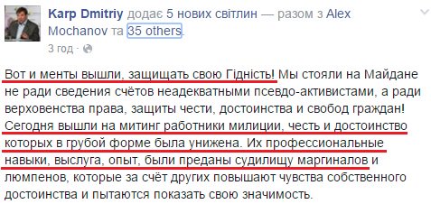 Менты участвуют в протестах только по приказу и они более профессиональны в этом, чем любой средний украинец. Когда в Донецке начиналась российская оккупация, на пророссийские митинги свозили не только "туристов из Ростова", там с триколорами бегали и наши менты в гражданском. Тоже по приказу, разумеется.